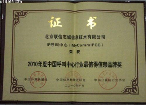 在本次評選中,北京聯(lián)信志誠信息技術(shù)有限公司(簡稱MyComm公司),其核心產(chǎn)品MyCommIPCC獨(dú)享 2010年度中國呼叫中心行業(yè)最值得信賴品牌獎(jiǎng)。