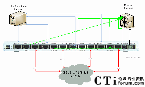 每一個FA40/FB40/FD40失效轉(zhuǎn)換機(jī)支持四個備用端口,通過多個失效轉(zhuǎn)換機(jī)堆疊,可以支持大容量IP通信系統(tǒng)的失效備援。