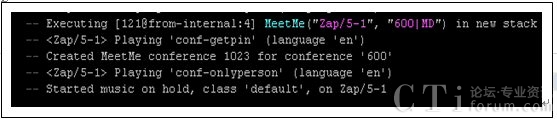 分別撥通八部電話到電話會(huì)議,這里撥打121,然后系統(tǒng)提示密碼,這里輸入123456,最后系統(tǒng)提示輸入會(huì)議房間號(hào),這里是900。成功撥入后,如果你是第一個(gè)進(jìn)入會(huì)議的人,系統(tǒng)會(huì)提示你是第一個(gè)人,然后播放音樂(lè),直到下一位人到來(lái),音樂(lè)停止。接下來(lái)的人成功撥入會(huì)議后,會(huì)聽到一小段系統(tǒng)音樂(lè),然后聽到會(huì)議。