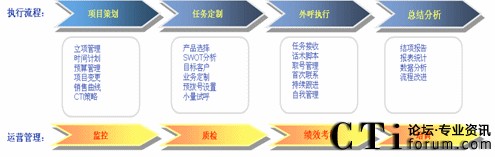 精準(zhǔn)的電話(huà)營(yíng)銷(xiāo)應(yīng)該遵循“項(xiàng)目策劃—>任務(wù)定制—>外呼執(zhí)行—>總結(jié)分析”繼而進(jìn)行繼續(xù)銷(xiāo)售跟進(jìn)或增值服務(wù)。一個(gè)陌生的電話(huà)拜訪要想取得成功,就需要在項(xiàng)目策劃階段充分考慮客戶(hù)的需求和利益,結(jié)合產(chǎn)品特性對(duì)不同客戶(hù)分類(lèi)定制個(gè)性化的電銷(xiāo)腳本和任務(wù)話(huà)述,并在外呼執(zhí)行的過(guò)程中根據(jù)銷(xiāo)售曲線(xiàn)和經(jīng)驗(yàn)分析為廣大銷(xiāo)售人員提供及時(shí)的銷(xiāo)售幫助和提醒,最終在項(xiàng)目的各個(gè)里程碑和結(jié)束時(shí)進(jìn)行過(guò)程總結(jié)、業(yè)績(jī)考核和進(jìn)一步的業(yè)務(wù)流程改進(jìn),以便在下一輪交叉銷(xiāo)售和外呼任務(wù)時(shí)逐步提升銷(xiāo)售業(yè)績(jī)。