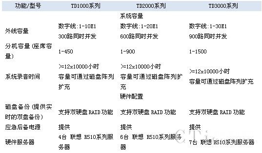 TD3000系列產(chǎn)品,設(shè)計(jì)容量為30E1外線(xiàn)(900路并發(fā)),1500座席。TD3000系列在2000系列的技術(shù)上,增加1臺(tái)應(yīng)用服務(wù)器,以響應(yīng)更多的座席業(yè)務(wù)處理的請(qǐng)求。