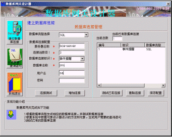 首先使用數(shù)據(jù)庫網關設計器定義數(shù)據(jù)庫配置,其中包括數(shù)據(jù)庫服務器的名稱和數(shù)據(jù)庫的登陸信息。該系統(tǒng)支持ODBC連接和ADO連接,支持的數(shù)據(jù)庫有ACCESS,SQL,MYSQL,ORACLE,SYBASE,配置方式如圖四所示。