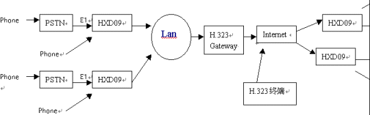 HXD09能滿足各種網(wǎng)絡(luò)條件下的應(yīng)用。組網(wǎng)拓?fù)鋱D如下: