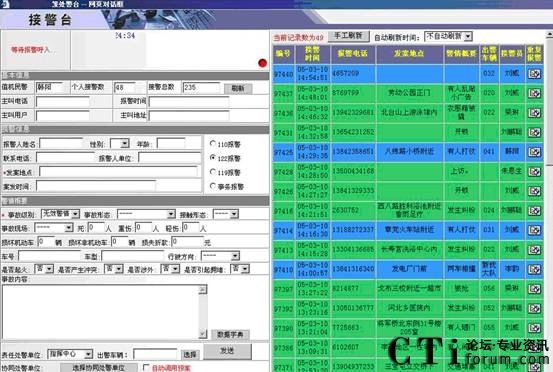 監(jiān)督臺顯示所有接處警坐席的工作狀態(tài),并用不同的顏色標(biāo)示不同的狀態(tài)。