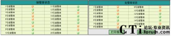 系統(tǒng)模塊中具有網(wǎng)絡(luò)運(yùn)行檢測監(jiān)控等功能,可對所有接處警的網(wǎng)絡(luò)連通狀態(tài)、系統(tǒng)登錄狀態(tài)等進(jìn)行狀態(tài)檢測,并當(dāng)網(wǎng)絡(luò)客戶端有誤時(shí)系統(tǒng)會自動報(bào)警,并可把狀態(tài)報(bào)告存儲下來以供查閱。