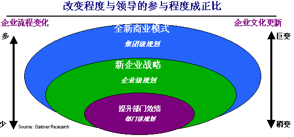 成功實施CRM的第一個關(guān)鍵是贏得企業(yè)的高層支持。高層支持的項目,或稱“一把手”工程,往往能夠推行得比較順利。在我們的實施中,最經(jīng)常項目牽頭人是客戶方負(fù)責(zé)運營的老總或總經(jīng)理。企業(yè)要應(yīng)用CRM系統(tǒng),不應(yīng)當(dāng)僅僅是信息部門或銷售部門內(nèi)部的事情,而應(yīng)當(dāng)是整個企業(yè)在高層領(lǐng)導(dǎo)的直接參與指導(dǎo)之下的多方協(xié)同調(diào)整,因為CRM涉及的是市場、銷售、服務(wù)等多個與客戶打交道的部門和流程。企業(yè)內(nèi)部的高層管理者必須承擔(dān)起項目負(fù)責(zé)人的角色,才能讓CRM實施順利地開展,才能完成部門之間的協(xié)同,才能實現(xiàn)企業(yè)內(nèi)部的文化轉(zhuǎn)變。高層參與的程度可以由下面的圖示說明: