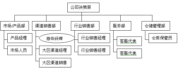 除分銷渠道管理之外,紫光網(wǎng)聯(lián)的前端管理組織機構(gòu)還包括市場/產(chǎn)品部、行業(yè)銷售部、服務(wù)部和倉儲管理部門。示意圖如下: