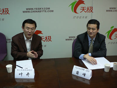 主持人:剖析行業(yè)發(fā)展趨勢(shì),體察企業(yè)e化需求,各位網(wǎng)友下午好,感謝大家關(guān)注本期的e領(lǐng)袖對(duì)話。自2002年開始,CRM在中國(guó)取得了快速的發(fā)展,但在人們欣慰的同時(shí)還有一個(gè)現(xiàn)實(shí)讓CRM的概念可能人盡皆知,但CRM的理念卻遠(yuǎn)沒有深入人心。另外,最近一頓時(shí)間,在領(lǐng)域內(nèi)舉足輕重人物的言行以及一些知名CRM企業(yè)的變數(shù),讓人們對(duì)CRM的未來(lái)有了各種各樣的猜測(cè)和顧慮。那么CRM到底會(huì)有一個(gè)什么樣的未來(lái),CRM為會(huì)帶給中國(guó)的企業(yè)用戶一個(gè)什么樣的未來(lái),今天我們對(duì)話請(qǐng)到的是在CRM領(lǐng)域相當(dāng)資深的兩位嘉賓,看看他們會(huì)給我們一個(gè)什么樣的答案。今天這個(gè)話題引起了網(wǎng)友濃厚的興趣,在進(jìn)來(lái)之前很多網(wǎng)友已經(jīng)提出了問題,今天會(huì)把網(wǎng)友的問題結(jié)合我們?cè)掝}一起進(jìn)行,請(qǐng)大家隨時(shí)關(guān)注,首先介紹一下今天來(lái)到對(duì)話的兩位嘉賓。一位是TurboCRMCEO薛峰。這位是獨(dú)立咨詢實(shí)施顧問葉開老師。首先歡迎兩位到來(lái),今天話題可能跟之前不同,之前會(huì)了我們?cè)掝},隨后結(jié)合我們網(wǎng)友問題來(lái)聊。但是今天網(wǎng)友的問題和今天的主題比較切合,所以就網(wǎng)友問題和我們?cè)掝}結(jié)合起來(lái)進(jìn)行,今天把首發(fā)交給網(wǎng)友,Turbo算是國(guó)內(nèi)最大的嗎?先請(qǐng)葉老師回答一下。
