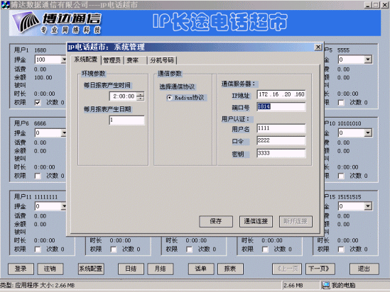 SuperB語音計費管理系統(tǒng)IP超市版 專用于基于VoIP技術IP超市的語音計費關鍵軟件(最大可管理10000個語音終端、網(wǎng)關,內(nèi)置博達Radius Server)