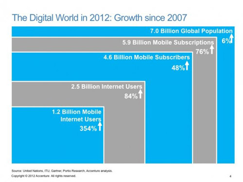 世界人口在過去5年里增長(zhǎng)了6%,而移動(dòng)用戶增幅超過了4倍