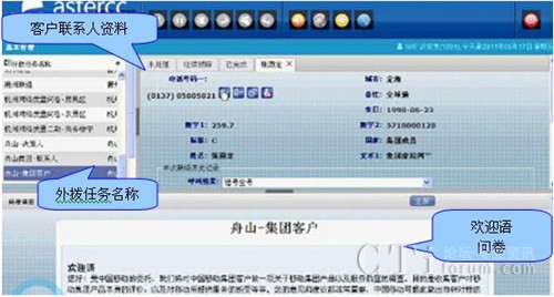 獲取的客戶數(shù)據(jù)便出現(xiàn)在客戶聯(lián)系人資料中,雙擊任一數(shù)據(jù)便可獲取相應的客戶具體資料,如所屬的集團公司,所在城市,電話號碼等,是坐席對客戶資料瞬間掌握方便外呼服務。