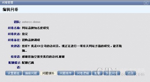 在這里你可以對問卷設置題組、編輯問題、補充問題、問題排序、問卷邏輯、配額、預覽問卷同時進行操作,一步到位。