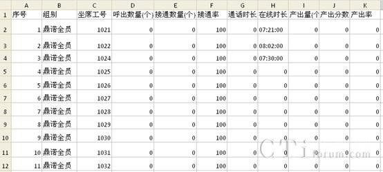 ①坐席表現(xiàn)報表