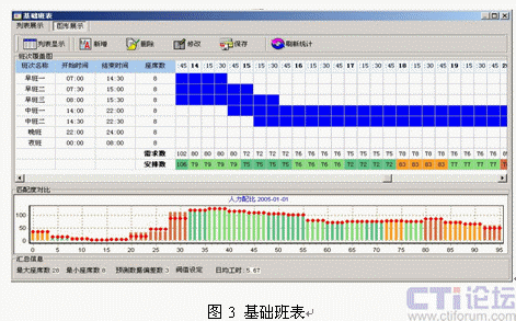 引入呼叫中心排班系統(tǒng)是提升坐席資源利用率的有效解決方案,排班系統(tǒng)可以對大量的歷史呼叫數(shù)據(jù)進(jìn)行分析,并剔除特殊事件對呼叫量的影響,從而得出呼叫量變化的規(guī)律曲線,再輔助對特殊預(yù)期事件影響度的疊加,可以對未來一定時(shí)間的呼叫量變化做出比較客觀的預(yù)測(圖2)。在預(yù)測話務(wù)量變化曲線的同時(shí),結(jié)合人員技能和班次設(shè)定,給出高擬合度的人工排班方案(圖3)。更為重要的是,成熟排班系統(tǒng)提供的話務(wù)預(yù)測模型多具備學(xué)習(xí)能力,能夠?qū)㈩A(yù)測的話務(wù)數(shù)據(jù)與實(shí)際話務(wù)數(shù)據(jù)進(jìn)行對比,從而不斷提高話務(wù)預(yù)測模型的預(yù)測精度。成熟排班工具可以在保持呼叫中心同等服務(wù)水平的前提下,降低人工坐席代表的投入數(shù)量,進(jìn)而釋放部分人工資源開展其它業(yè)務(wù)。