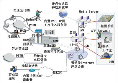 E號(hào)通第一期32座席,集中為全國(guó)用戶(hù)提供服務(wù),以?xún)?nèi)置在排隊(duì)機(jī)的IP網(wǎng)關(guān)為中心搭建的IP語(yǔ)音網(wǎng)解決異地接入問(wèn)題,節(jié)省了帶寬,降低了運(yùn)營(yíng)費(fèi)用。WECC(Web集成呼叫中心)為網(wǎng)上交易用戶(hù)提供多種交互方式:IP點(diǎn)擊通話(huà)、文字交談、護(hù)航瀏覽等,解決了在線(xiàn)服務(wù)問(wèn)題;強(qiáng)大的呼出功能模塊,提供了定制和主動(dòng)式服務(wù);同時(shí),內(nèi)置在排隊(duì)機(jī)內(nèi)部的IVR,語(yǔ)音質(zhì)量完美,響應(yīng)速度快。該方案大規(guī)模的集中接入整合了資源,方便了管理,可平滑擴(kuò)展至3萬(wàn)中繼以上。E號(hào)通是國(guó)通證券系統(tǒng)內(nèi)外資源的一次大規(guī)模、高層次的有效整合。首先它整合了營(yíng)業(yè)部分散的資源,將多種媒體的接入集中到中心,在股民享受更高層次和便捷的服務(wù)同時(shí),券商自身也降低了運(yùn)營(yíng)及管理成本。其次國(guó)通通過(guò)E號(hào)通整合了國(guó)通在市場(chǎng)研究、行業(yè)研究 、經(jīng)紀(jì)業(yè)務(wù)、投行業(yè)務(wù)、電子商務(wù)等領(lǐng)域的優(yōu)勢(shì)資源,以及與銀行合作帶來(lái)的外部資源,形成了具有國(guó)通特色的、集證券、銀行多種個(gè)性化服務(wù)內(nèi)容于一身金融服務(wù)“超市”。