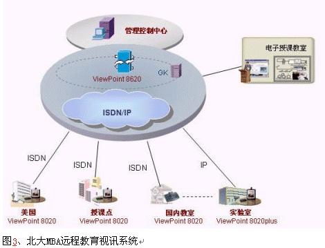 北京大學(xué)是我國首批被確定開展現(xiàn)代遠(yuǎn)程教育試點的院校之一,自1999年起至今,北京大學(xué)現(xiàn)代遠(yuǎn)程教育已經(jīng)遍布全國18個省市,2002年北大MBA作為國內(nèi)先進(jìn)的遠(yuǎn)程教育項目作為一項重要的國際間的教育交流項目,欲通過建設(shè)視訊系統(tǒng)和美國互通,進(jìn)行國際間的MBA遠(yuǎn)程教學(xué),同時可以進(jìn)行幾個分點之間的交互式視頻會議,提高學(xué)習(xí)效率。
