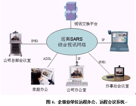 非典型肺炎不但對國家的經(jīng)濟(jì)造成了重大的損失,而且使得全社會對"非典"噤若寒蟬,大家對出差甚至外出都異常緊張。華為公司提供為個人家庭辦公、探親訪友的遠(yuǎn)程多媒體通信解決方案,大家在家里即可通過網(wǎng)絡(luò)和親朋好友"面對面"交流、在家中辦公。減少外出、遠(yuǎn)離人員眾多地區(qū),有效預(yù)防非典。對于有條件的用戶群可以推薦在現(xiàn)有寬帶線路或新增寬帶線路上購買軟件,即可實現(xiàn)親朋好友間的個人視頻通信;對于暫不具備寬帶條件的群體,如學(xué)生等,可以考慮在重點營業(yè)廳設(shè)立專門會議室或者視訊公話亭等,提供預(yù)約視頻服務(wù),滿足其溝通的需求。