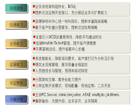 從服務(wù)內(nèi)容來看,聯(lián)絡(luò)中心建立了一個(gè)統(tǒng)一面向客戶的綜合性服務(wù)平臺(tái),實(shí)現(xiàn)涵蓋公司各項(xiàng)主要產(chǎn)品和業(yè)務(wù)的專業(yè)信息咨詢與交易功能,并實(shí)現(xiàn)人工服務(wù)、業(yè)務(wù)咨詢、業(yè)務(wù)處理、投訴處理、建議受理、預(yù)約服務(wù)、客戶回訪等一體化的話務(wù)處理與管理,為客戶提供多樣化、全方位、個(gè)性化的接入方式與服務(wù)內(nèi)容。