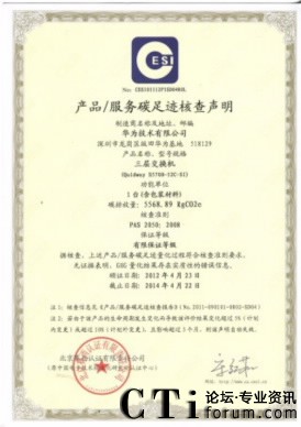 CTI論壇(ctiforum)5月23日消息(記者 楊佳林):全球領(lǐng)先的ICT解決方案供應(yīng)商華為宣布,華為S5700系列交換機(jī)產(chǎn)品(共4款,S5700-28-EI-24S、S5700-48TP-SI-AC、S5700-52C-EI、S5700-52C-SI)經(jīng)中國電子技術(shù)標(biāo)準(zhǔn)化研究所認(rèn)證中心(以下簡(jiǎn)稱CESI)認(rèn)證核查,產(chǎn)品碳足跡量化過程符合核查準(zhǔn)則要求,獲得“碳足跡認(rèn)證”證書。這是國內(nèi)第一張交換機(jī)產(chǎn)品碳足跡認(rèn)證證書,10日在深圳舉行的“2012中國碳排放認(rèn)證認(rèn)可技術(shù)國際論壇”上,主辦方CESI向華為授予了該證書。