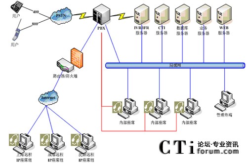 呼叫中心是一種基于CTI技術、充分利用通信網(wǎng)和計算機網(wǎng)的多項功能集成,并與企業(yè)連為一體的一個完整的綜合信息服務系統(tǒng),利用現(xiàn)有的各種先進的通信手段,效地為客戶提供高質(zhì)量、高效率、全方位的服務。表面上看,呼叫中心是企業(yè)在最外層加上了一個服務層。實際上,它不僅對企業(yè)的外部用戶具有服務功能,同時也為企業(yè)內(nèi)部的管理、服務、調(diào)度、增值起到非常重要的協(xié)調(diào)作用。