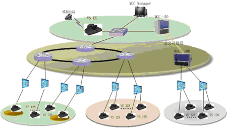 一般來(lái)說(shuō),在省公司同時(shí)參與會(huì)議的人數(shù)較多,考慮配置比較大的系統(tǒng),由某一領(lǐng)導(dǎo)召集一些相關(guān)成員在此開(kāi)會(huì);在地市公司同時(shí)參與會(huì)議的人數(shù)較少,只是一些主要領(lǐng)導(dǎo)參加會(huì)議,考慮配置比較小的系統(tǒng);同時(shí),為了實(shí)現(xiàn)終端之間管理和傳送音頻、視頻和數(shù)據(jù),需要MCU來(lái)協(xié)調(diào)終端的工作,并與上級(jí)MCU相級(jí)聯(lián),擴(kuò)大會(huì)議的規(guī)模。另外,可以增加一套T.120服務(wù)器,該系統(tǒng)是利用多媒體技術(shù)幫助使用者對(duì)工作中的各種信息進(jìn)行處理,如共享數(shù)據(jù)、共享應(yīng)用程序、實(shí)現(xiàn)文件的雙向傳輸?shù),從而?gòu)造出一個(gè)多人共享的工作空間。以及增加一套VOD系統(tǒng),它集視頻采集、點(diǎn)播、廣播于一體,這樣就可以將視頻會(huì)議的內(nèi)容實(shí)時(shí)的錄制到本地,也可將一些培訓(xùn)資料放在視頻點(diǎn)播里,便于對(duì)貴公司員工進(jìn)行培訓(xùn),還能通過(guò)視頻廣播的功能,讓使用PC機(jī)的人員不在會(huì)議室,便可以通過(guò)瀏覽器實(shí)時(shí)的看到和聽(tīng)到正在召開(kāi)的會(huì)議。