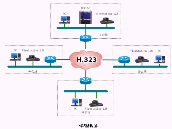 結合遼寧省消防網(wǎng)絡,本方案設計的視頻會議系統(tǒng)承載在遼寧省消防局的IP網(wǎng)絡平臺上,采用國際流行的ITU H.323通信標準。系統(tǒng)采用以MCU為中心輻射各個會場電視會議終端的星型網(wǎng)絡結構。整套系統(tǒng)由16個會場組成,采用美國Polycom公司的ViewStation 128會議室型終端設備。網(wǎng)管中心安放一臺Polycom 公司的MGC-50(多點會議控制單元),用于對全網(wǎng)終端的控制,實現(xiàn)多點、點對點的會議。