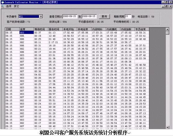 隨著利盟公司客戶服務(wù)系統(tǒng)的開通,使傳統(tǒng)的電話服務(wù)提高到了一個新的階段;一方面借助客戶服務(wù)系統(tǒng)提供的統(tǒng)計分析功能,使客戶服務(wù)中心的績效考核更加準(zhǔn)確、高效和科學(xué);另一方面通過應(yīng)用先進的信息技術(shù)和產(chǎn)品,可以極大地提高客戶服務(wù)的質(zhì)量、效率和滿意度,從而對提升公司形象,促進產(chǎn)品銷售發(fā)揮積極的作用。