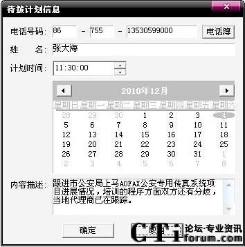 A8電腦傳真機(jī)的通話記錄和通話歷史讓您記住過去,來電彈屏和自動(dòng)答錄助您處理現(xiàn)在,待撥計(jì)劃和到時(shí)提醒則幫您安排未來。點(diǎn)擊電話商務(wù)通主界面中的待撥計(jì)劃按鈕,出現(xiàn)您未來將要撥出電話的日程安排,您可以對(duì)其進(jìn)行添加、編輯和刪除等操作。時(shí)間一到A8電腦傳真機(jī)會(huì)自動(dòng)彈屏提醒,待撥計(jì)劃中的電話一經(jīng)撥出,A8會(huì)自動(dòng)刪除該電話號(hào)碼。