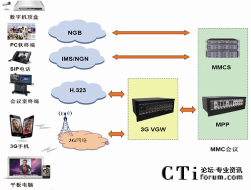 鑒于傳統(tǒng)視頻會(huì)議只能在固定地點(diǎn)、專用線路,通過專用設(shè)備召開語(yǔ)音和視頻會(huì)議的局限性。3G移動(dòng)視頻會(huì)議解決方案實(shí)現(xiàn)了將會(huì)議拓展到整個(gè)互聯(lián)網(wǎng)和移動(dòng)網(wǎng)絡(luò),用戶隨時(shí)隨地可以使用3G手機(jī)和PC,通過互聯(lián)網(wǎng)、移動(dòng)網(wǎng)絡(luò)即可便捷地接入到現(xiàn)有會(huì)議系統(tǒng)中,真正實(shí)現(xiàn)跨越地域、空間的全方位會(huì)議。