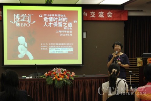 CTI論壇(ctiforum)6月3日消息(記者 張潔):2011年5月31日下午,上?茖W(xué)會(huì)堂思南樓九層賓客盈門,勝友如云。易才博普奧“博學(xué)匯”系列活動(dòng)之四“危情時(shí)刻的人才保留之道”研討會(huì)在輕松愉悅的氛圍中拉開帷幕。本屆“博學(xué)匯”以“人才保留”為主題,邀請(qǐng)了業(yè)內(nèi)權(quán)威專家及其資深從業(yè)者就人才保留這一話題展開一系列探討。會(huì)上分別從學(xué)術(shù)觀點(diǎn)、呼叫中心、人力資源、服務(wù)外包等諸多領(lǐng)域來探討人才保留的種種新途徑、新方法。
