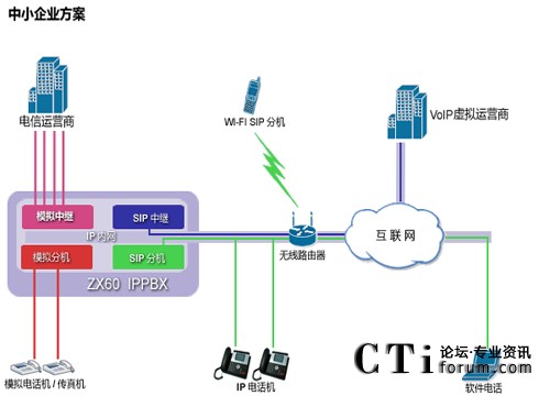 ZX60不僅具有本地電話分機(jī)接口,還運(yùn)行IP電話機(jī)遠(yuǎn)程注冊,無論你若干個辦公室分布在何處,都可以打造成你內(nèi)部免費(fèi)通話的集團(tuán)電話通信系統(tǒng),節(jié)約你的內(nèi)部通信成本,提高辦公效率。