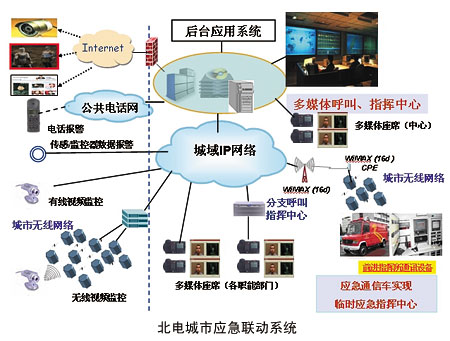 北電的城市應(yīng)急系統(tǒng)是以光傳輸系統(tǒng)以及城市無線寬帶接入網(wǎng)絡(luò)為基礎(chǔ)的,集成了應(yīng)急指揮平臺、多媒體通信平臺、地理信息平臺等多種系統(tǒng)功能于一體的綜合解決方案。