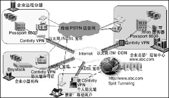 隧道及企業(yè)中心,加重了網(wǎng)絡的負擔。2、通過Contivity 的Split Tunneling 的機制,使遠程/移動辦公室用戶及遠程移動用戶可以不經過IPSEC