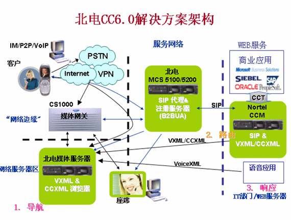 由于北電應(yīng)用中心CC6.0完全基于SIP協(xié)議,支持CCXML與VXML的應(yīng)用,因此,使用北電應(yīng)用中心CC6.0可為客戶(hù)提供新型應(yīng)用,如彩鈴、自然語(yǔ)言識(shí)別、基于WEB信息的自助語(yǔ)音服務(wù)等。