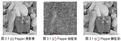加密過(guò)后的影像,不論以人類的視覺直接觀看,或計(jì)算其碎形維度D (Fractal Dimension),都顯示影像達(dá)到完全混亂的程度。(2)