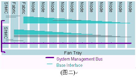I2C總線使用100Khz時鐘和3.3V信號。ATCA規(guī)范制定要求2個IPMB總線,分別冠以IPMB-A和IPMB-B,兩條總線合一稱之為IPMB-0。IPMB可以以雙總線或雙星型配置方式實現(xiàn)。之所以要求雙IPMB總線是為了保證系統(tǒng)管理子系統(tǒng)的可靠性。IPMB總線被用作聯(lián)接ShMC與ATCA單板和ATCA機架中FRUs的橋梁。雙IPMB總線可同時被使用以加倍傳輸頻寬,但設(shè)計者必須考慮萬一其中一條IPMB總線失靈所帶來的沖擊。典型的ATCA背板上系統(tǒng)管理間的互聯(lián)如下圖所示,在背板上有兩個ShMC槽位,兩個交換槽位,11個節(jié)點槽位和1個風(fēng)扇的連接。值得說明的是管理總線與所有的節(jié)點槽、交換槽通過一對雙備援的ShMC聯(lián)接。