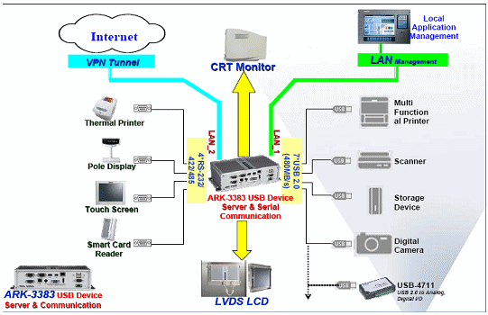 ARK-3383從設計初就定義為企業(yè)類USB設備的接入”門戶”, ARK-3383可使使用者立即連接各種各樣的USB外圍設備或方便共有的用戶存取,數(shù)據(jù)傳輸速度可達480