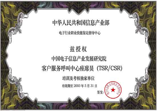 呼叫中心職業(yè)標(biāo)準(zhǔn)體系的主管單位為信息產(chǎn)業(yè)部電子行業(yè)職業(yè)技能鑒定指導(dǎo)中心;主辦單位為中國(guó)電子信息產(chǎn)業(yè)發(fā)展研究院職業(yè)技能培訓(xùn)部。