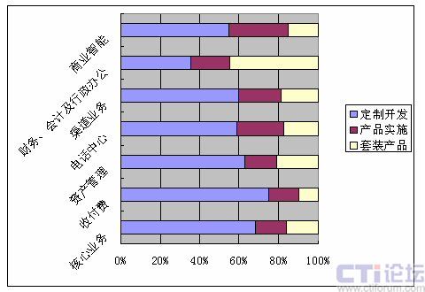第三種策略是產(chǎn)品實(shí)施方式,即在產(chǎn)品化信息系統(tǒng)基礎(chǔ)上通過(guò)對(duì)企業(yè)業(yè)務(wù)現(xiàn)狀的分析規(guī)劃為企業(yè)定制滿足業(yè)務(wù)需求的信息系統(tǒng),該種方式將企業(yè)業(yè)務(wù)規(guī)劃與信息化過(guò)程相統(tǒng)一,縮短信息化周期,降低信息化風(fēng)險(xiǎn),對(duì)于未來(lái)企業(yè)業(yè)務(wù)的發(fā)展能夠通過(guò)保護(hù)既往投資的方式靈活應(yīng)對(duì)。目前這三種不同信息化策略在保險(xiǎn)企業(yè)各業(yè)務(wù)單元應(yīng)用的情況如下圖所示。