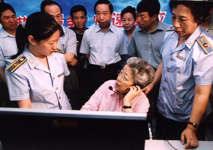 吳儀同志視察北京12315投訴舉報指揮中心現(xiàn)場