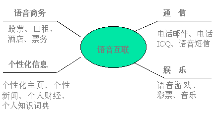 在中國,電話有著最廣泛的用戶群;追求方便時尚,希望使用互聯網信息、郵件而不懂或不熟悉鍵盤操作的用戶占4/5;語音互聯網是電話網與互聯網的完美結合,通過語音互聯,普通電話用戶用自然語言對話的方式即可獲取互聯網的主要服務,滿足用戶任何時間、任何地點、任何設備獲取信息的需求。在美國、日本,語音互聯已成為簡易終端接入互聯網的主要方式之一。