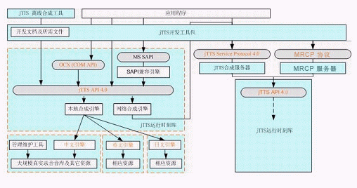 Programming Interface),即jTTS API 4.0,以及統(tǒng)一的多語(yǔ)種引擎管理模塊,即jTTS_ML.DLL。多語(yǔ)種的引擎(例如中文引擎jTTS_CH.DLL,英文引擎jTTS_EN.DLL等)在多語(yǔ)種引擎管理模塊的調(diào)度下進(jìn)行實(shí)際的合成工作,而目前尚未提供的其他語(yǔ)種的引擎也可以方便地加入到這個(gè)體系結(jié)構(gòu)中來(lái)。