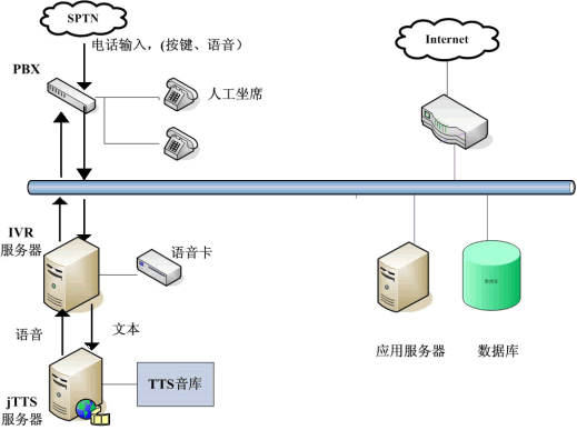 jTTS在12320中的應(yīng)用主要表現(xiàn)在查詢結(jié)果的語(yǔ)音返回和服務(wù)信息的發(fā)布上。只要將捷通TTS服務(wù)器集成到現(xiàn)有的IVR系統(tǒng)中,并且在IVR服務(wù)端設(shè)置好預(yù)讀出的文本即可。眾所周知,“12320”公益服務(wù)熱線需要提供海量關(guān)于我國(guó)公共衛(wèi)生相關(guān)法律法規(guī)、各種重大疾病的預(yù)防保健知識(shí)的宣傳和咨詢服務(wù),如果采用傳統(tǒng)人工座席或請(qǐng)專業(yè)播音人員錄音,費(fèi)時(shí)費(fèi)力,且投入較大。用語(yǔ)音合成技術(shù)(TTS)來(lái)解決,用戶提交查詢請(qǐng)求,IVR服務(wù)器收到請(qǐng)求后會(huì)向其他應(yīng)用服務(wù)器提交,當(dāng)IVR得到查詢結(jié)果后,將文本形式的查詢結(jié)果交給jTTS服務(wù)器,jTTS服務(wù)器返回查詢結(jié)果的語(yǔ)音形式,最終語(yǔ)音在坐席上播放,用戶就可以聽(tīng)到所要查詢的信息(如圖)。這樣市民可以24小時(shí)撥打熱線,查詢各方面的內(nèi)容,不受時(shí)間限制,既節(jié)約政府開(kāi)支,為民辦實(shí)事,而且在最大程度上提高了辦事效率,樹(shù)立了良好的政府形象。