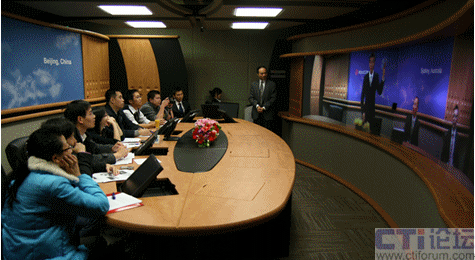 Australia”以外,畫面所呈現(xiàn)的場(chǎng)景與我們的會(huì)議室完全一樣。此時(shí),在座的體驗(yàn)者都露出驚訝的表情,并開(kāi)始互致問(wèn)好。讓我意外的是:當(dāng)人們開(kāi)始自我介紹時(shí),大家的目光都齊刷刷的投向了發(fā)言者,而且就像坐在同一間會(huì)議室,根本不用刻意提高嗓門講話。