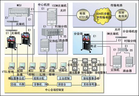 電路可靠。全網(wǎng)電路中沒有其它網(wǎng)絡設備,高院主會場由光端機直接使用E1接口與MCU連接,分會場由光調制解調器E1口直接與會議終端相接,電路非常簡捷。全程使用光纜傳輸,中間不用任何復用或轉換設備,不僅電路可靠而且對網(wǎng)絡故障判斷、維護顯得異常簡單。