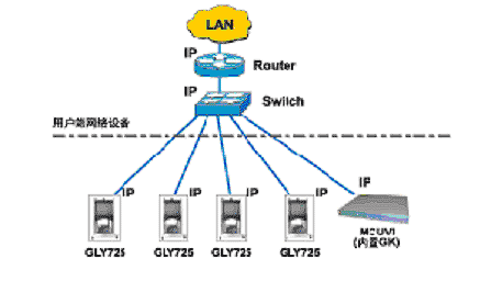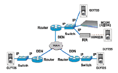 在這幾個(gè)不同的辦公地點(diǎn)的會議室分別配置一臺視頻會議終端設(shè)備,在主會議室中再配置一臺多點(diǎn)控制單元MCU,即可實(shí)現(xiàn)商業(yè)用戶在同城的幾個(gè)辦公室之間進(jìn)行視頻通信。該方案的組網(wǎng)非常簡單,不需要企業(yè)租用電信的線路,也不需要多購買其他網(wǎng)絡(luò)設(shè)備,只需為每臺設(shè)備分配私有的IP地址,就能實(shí)現(xiàn)視頻通信。