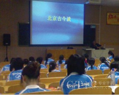 7月25日中央財經(jīng)大學(xué)的課堂里,近百位奧運(yùn)觀眾呼叫中心的志愿者聆聽了北京第二外國語大學(xué)西班牙語呂龍根教授的講座——“北京古今談”。呂教授幽默的語言、澎湃的激情,感染并征服了在座的每一位志愿者。教授從中國古代的六大古都(北京、西安、洛陽、開封、南京、杭州)談到古代北京的五朝建都(遼、金、元、明、清),從北京偉大的中軸線,談到北京建筑的風(fēng)水學(xué),從北京的胡同和四合院,談到北京的著名小吃,等等等等?芍^是古今暢想、無所不談,真正讓我們領(lǐng)略了何為學(xué)者風(fēng)范。