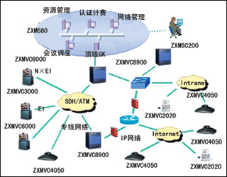 中興通訊寬帶高清晰度多媒體視訊系統(tǒng)采用MPEG-2和多信道協(xié)同處理技術(shù),通過寬帶傳輸網(wǎng)絡(luò),提供實(shí)時(shí)、雙向、交互式的可視會(huì)議服務(wù)。其核心是位于網(wǎng)絡(luò)中心的ZXMVC8900多媒體視訊服務(wù)器和ZXMVC 6000高清晰度會(huì)議電視終端設(shè)備。同時(shí)還能接入H.320、H.323類型的會(huì)議電視終端,并結(jié)合流媒體服務(wù)模塊。