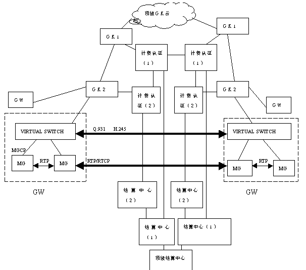 其中頂級網(wǎng)守云可以包含多個頂級網(wǎng)守,頂級網(wǎng)守之間的連接、一級網(wǎng)守與頂級網(wǎng)守之間的連接以及不同運營者之間的連接由各運營者根據(jù)各自的情況自行確定其具體的連接方式。當IP電話運營者的網(wǎng)絡(luò)規(guī)模不是很大時,頂級網(wǎng)守的功能可由其中一個一級網(wǎng)守完成。
