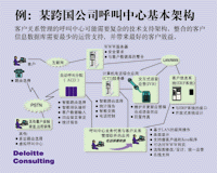 ---- 圖示是一個(gè)由德勤咨詢公司為一全球性客戶提出的呼叫中心建議,呼叫中心經(jīng)常需要這樣復(fù)雜的一個(gè)技術(shù)平臺(tái)和基礎(chǔ)支持才可能實(shí)現(xiàn)快速的來(lái)電和去電處理。